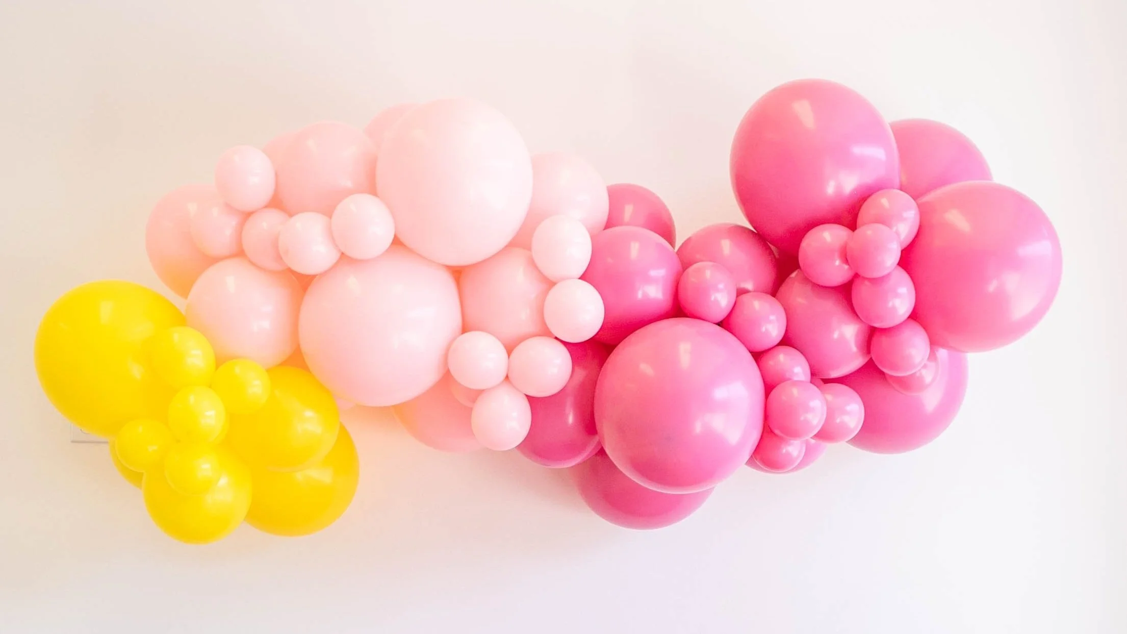 We can make garlands, clusters, balloon walls, and more. For helium balloons, we only do it as an add on to full balloon installations, we offer numbers, letters, and regular sized latex balloons at this time.
